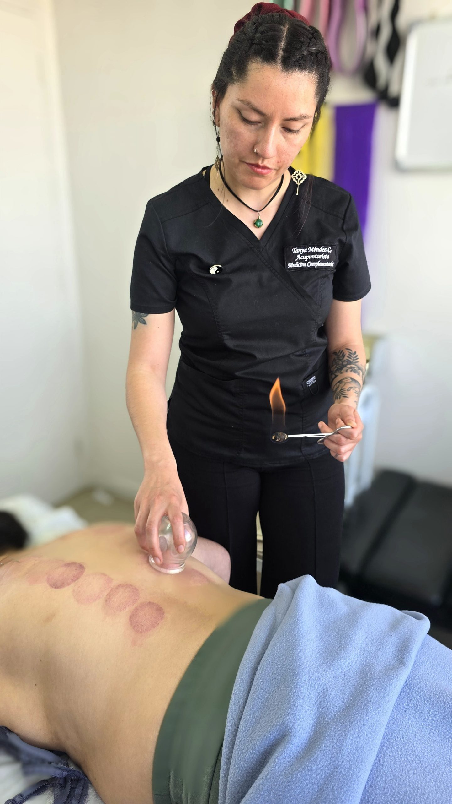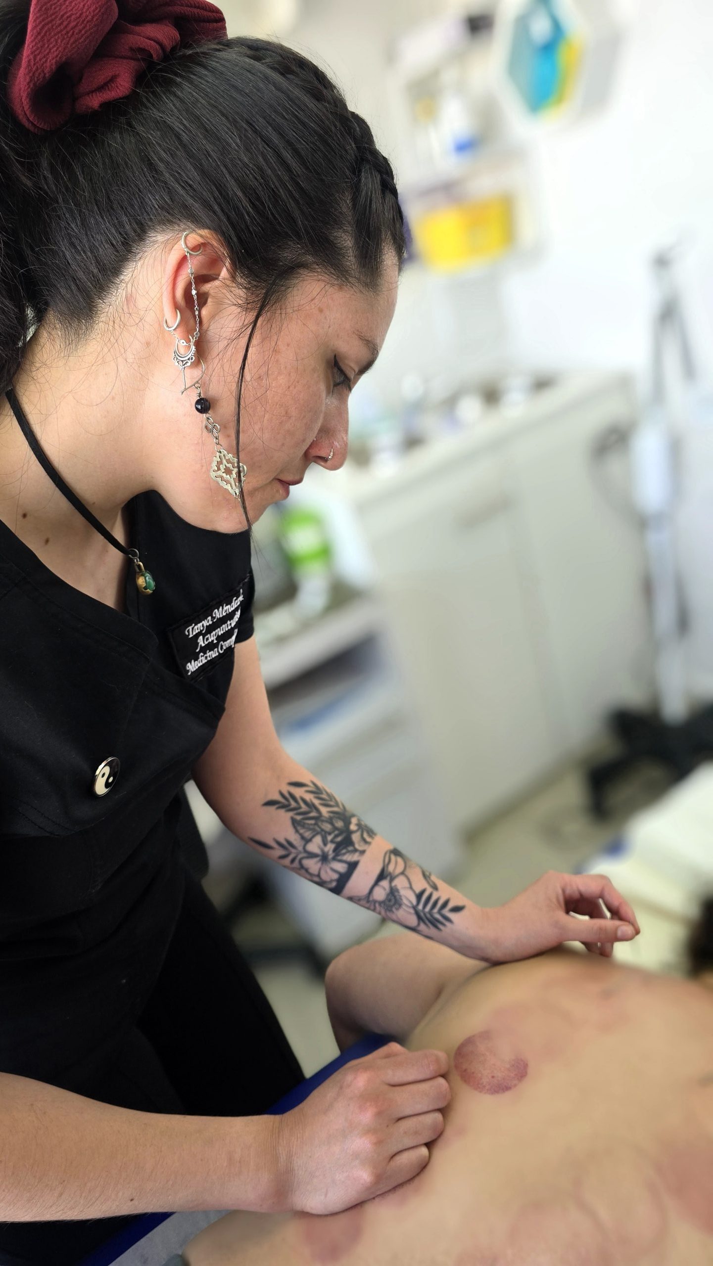 Técnica que emplea el uso de unas copas de tamaño y forma especial que pueden ser de vidrio o de acrílico, las cuales por medio de una presión negativa generan succión sobre la piel con la finalidad de aumentar el flujo sanguíneo, movilizar tejidos blandos y aliviar el dolor muscular.
